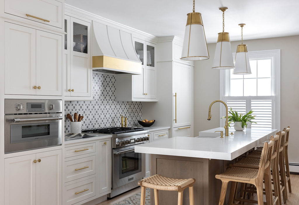 Black and white kitchens create timeless drama. White cabinets keep the room bright. Black accents—hardware, lighting, open shelving brackets—add definition. The contrast feels sophisticated and clean.
